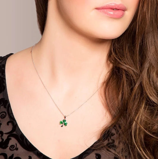 Sterling Silver Green Cubic Zirconia Shamrock Pendant